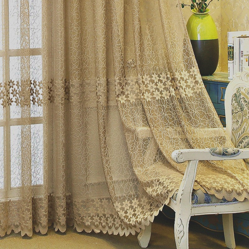 HomeCustom CurtainsSheer CurtainsElegant Pastoral Semi Sheer Grommet Light Filtering Floral Jacquard Luxury Sheer Curtains for the Living Room Bedroom Home