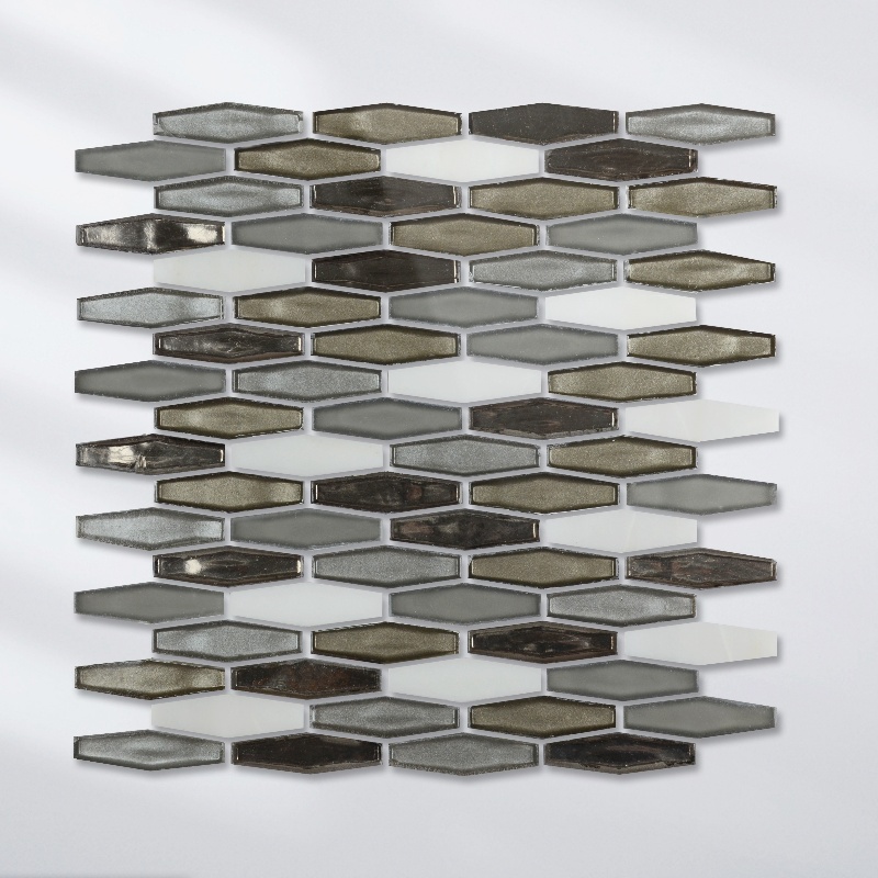Elevate your interior design with our exquisite hexagonal rhombus glass mosaic tiles, featuring a stunning combination of white and brown hues. Perfect for enhancing kitchen and bathroom walls, these tiles offer a stylish and contemporary touch while ensuring durability and easy maintenance. Transform your space into a work of art with these versatile mosaic tiles, ideal for both modern and classic decor styles.