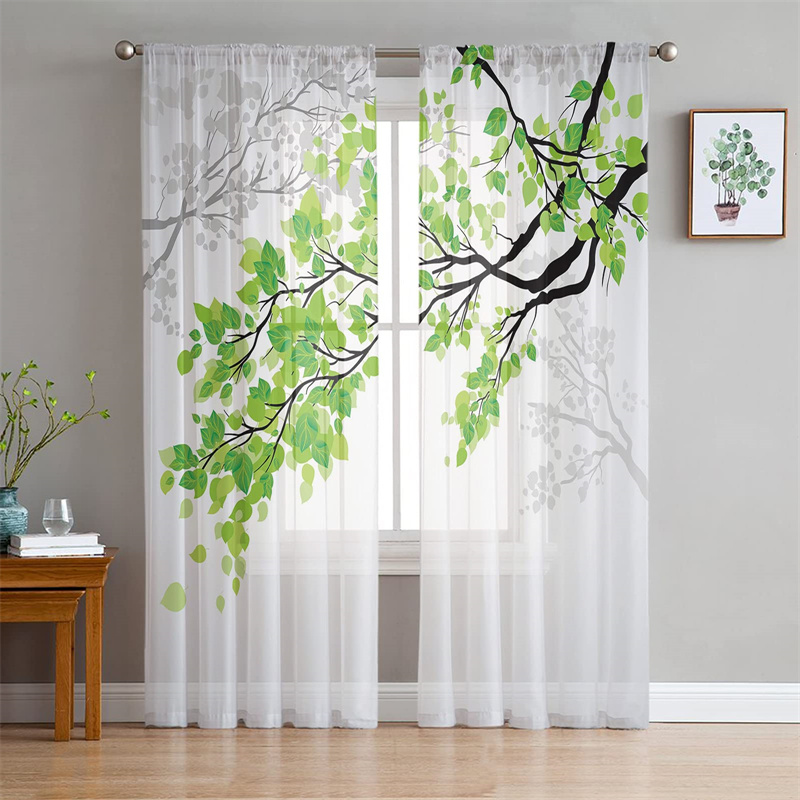 Semi Sheer Curtain 63 Inch Length Airy Drapes Bedroom Privacy Leaves Printed Voile Curtains