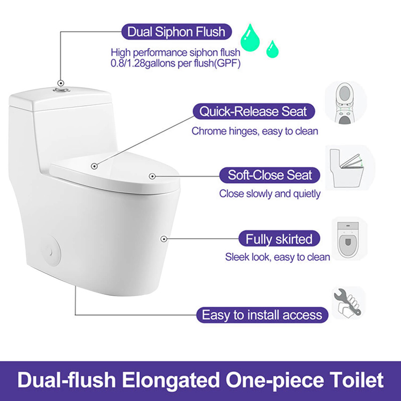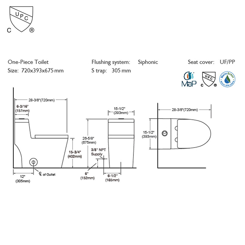 Introducing the CUP Modern One-Piece Toilet – a sleek, space-saving solution designed for commercial and residential wholesale buyers. Crafted with high-density ceramic, this toilet combines durability with a seamless, easy-to-clean design. Its fully glazed trapway prevents clogs, while the powerful siphon flushing system (1.28 GPF) ensures water efficiency without compromising performance, meeting EPA WaterSense® standards. The compact, ergonomic bowl height (16.5") suits ADA-compliant installations, and the concealed trapway adds a minimalist aesthetic. Pre-installed soft-close seat hinges reduce noise and maintenance. Ideal for bulk procurement, this toilet ships in durable packaging and is backed by a 5-year warranty. Custom branding and MOQ discounts available for wholesale partners.