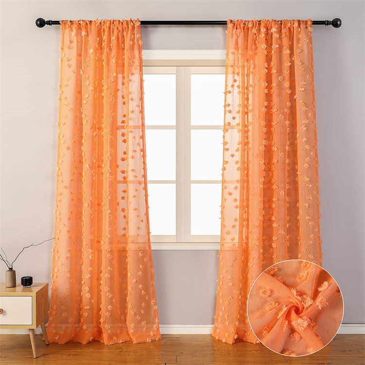 Wholesale Tulle Drapes Cute Pom Pom Carved Window Decorate Sheer Curtain
