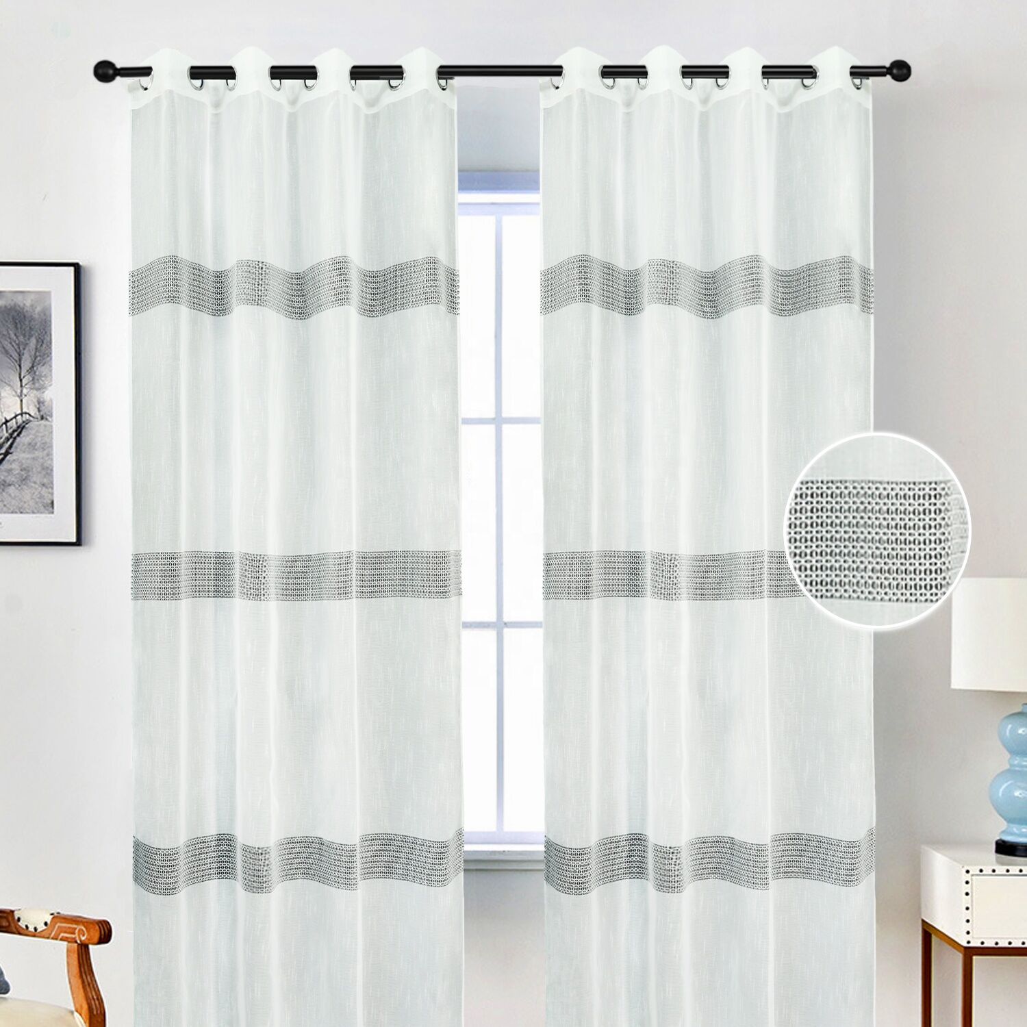 100% Polyester Striped Grommet Curtains Rope Format Transparent Translucent Modern Style for Home