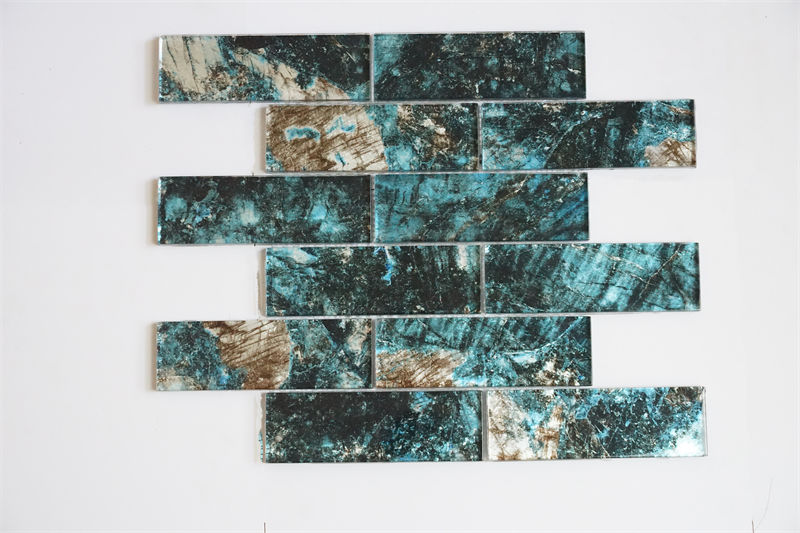 China Factory Wholesale Lake blue Glitter Glass Mosaic Tile for Bathroom Wall Production