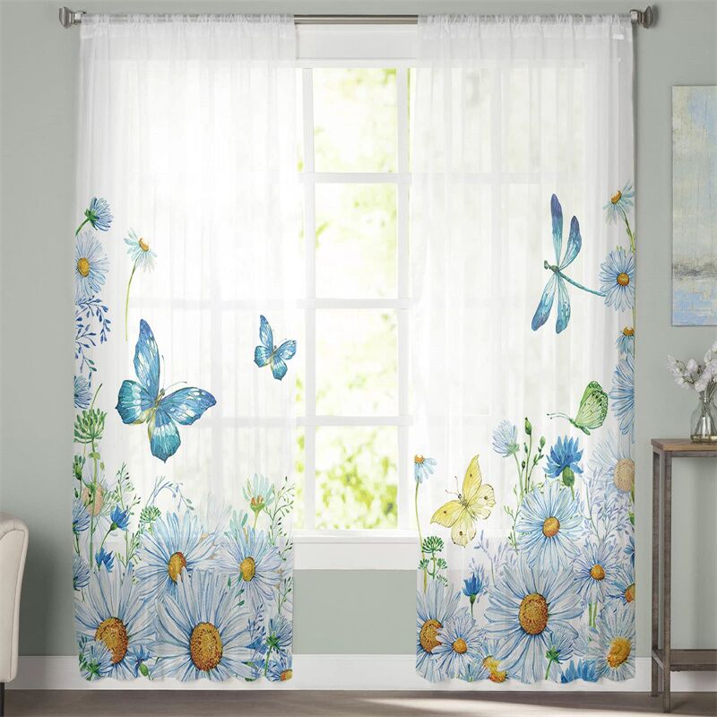 Wholesale Rod Pocket Vertical White Sheer Curtain With Design Daisy Printed Custom